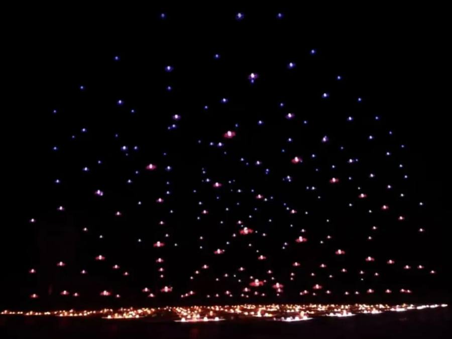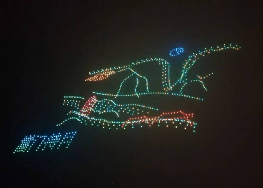 “5、4、3、2、1”! 随着倒计时的开始,数千架无人机,缓缓升起于苍穹之上,一幅幅巨型卷轴徐徐展开。在灯光的闪烁和变幻中,无人机组成的编队交错起落,变化出万千姿态。