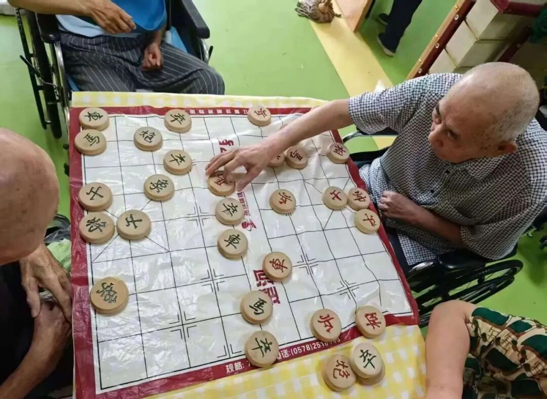 在养老院走廊的长桌上,一场象棋对弈正悄然展开。老人们围坐桌旁,目光紧紧锁定棋盘上的棋子,时而眉头微皱,思索着下一步的走向;时而露出了然的微笑,落子果断。旁边观棋的老人也兴致勃勃的在旁边看着,氛围轻松又热烈。象棋不仅为老人们的日常增添了乐趣,更成为他们交流互动、锻炼思维的好方式,在楚河汉界间,尽显晚年生活的别样风采。