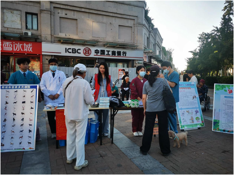 活动现场,由宠物医院医生为犬只提供免费基础检查,让居民及时了解爱犬健康状况;同时,设立犬只办证、年审服务点,工作人员耐心指导居民填写资料、办理手续,解决居民办证困扰。现场工作人员发放《郑州市文明养犬管理条例》宣传页,详细解读遛狗牵绳、粪便清理、禁养犬只类型、遛狗时间限制等规范内容。同时,为参与活动的居民赠送定制宣传小礼品,将文明养犬理念融入日常生活用品,潜移默化影响居民行为。同时,工作人员与执法人员对辖区内不文明养犬行为进行巡查,对遛狗不牵绳、粪便不清理等行为进行现场劝阻,首次违规以教育为主,引导居民认识错误并及时改正;对屡教不改或情节严重的行为,依据法规进行行政处罚,形成有力震慑,推动文明养犬长效管理。
