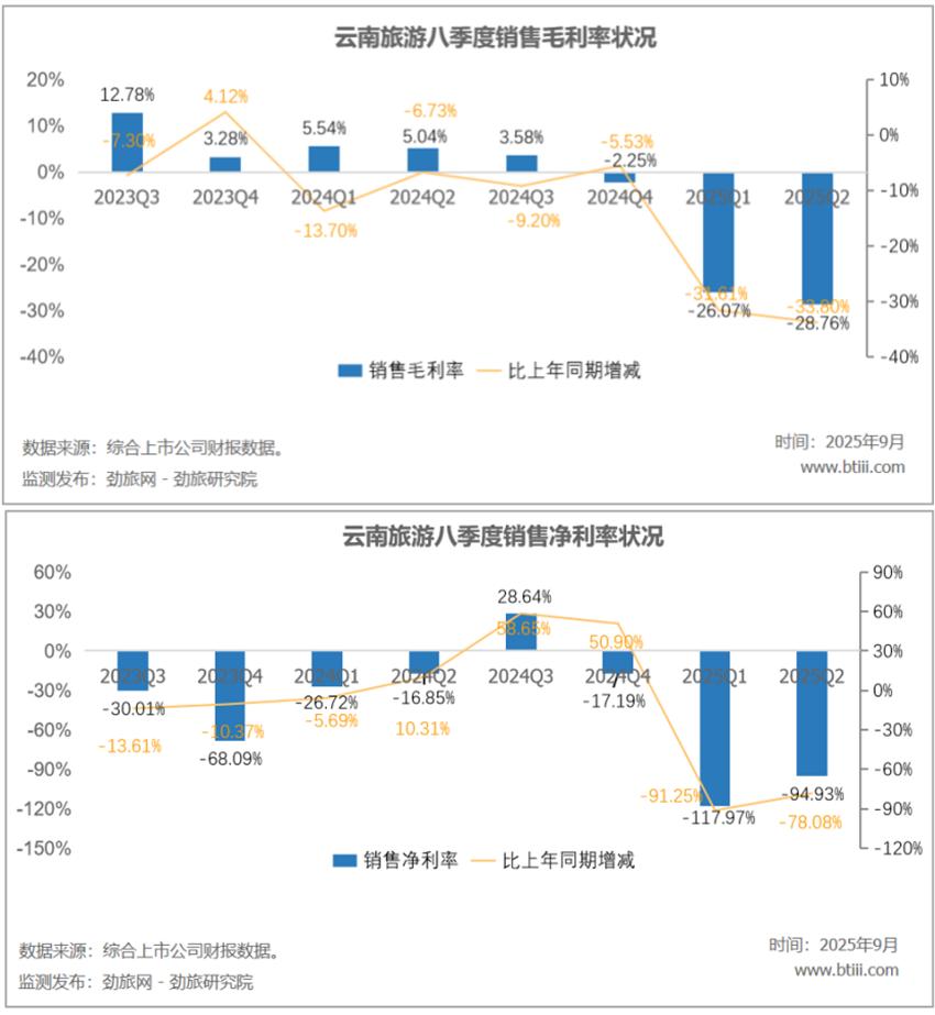 此外,云南旅游销售毛利率为-28.76%,同比上年减少33.80个百分点。销售净利率-94.93%,同比上年减少78.08个百分点。