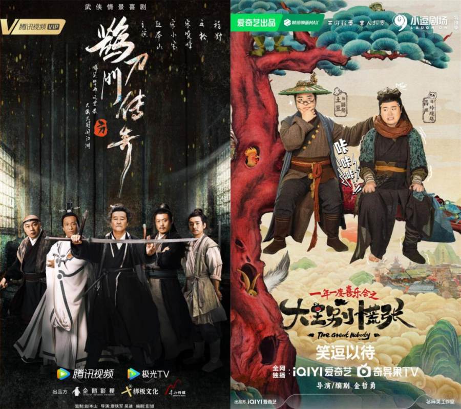 爱奇艺推出《破事精英》《瓦舍江湖》《少爷和我》《大王别慌张》,腾讯视频推出《兰闺喜事》《万春逗笑社》《请和搞笑的我谈恋爱》等,尝试让喜剧在多种语境里切换。尤其《鹊刀门传奇》以东北喜剧融合武侠元素为切入,既保留“笑料”又植入现实生活细节,被认为是“武林情景喜剧”的一种新尝试。