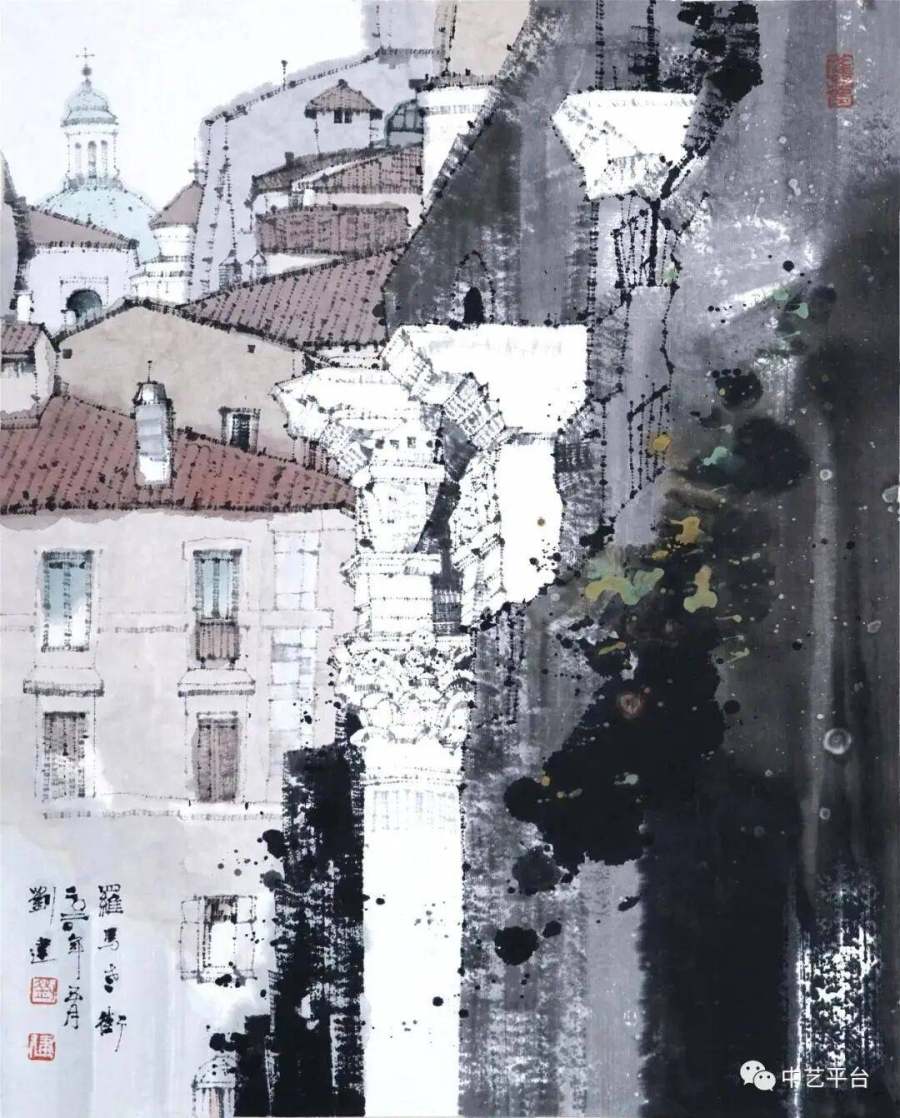 2009年前后,刘建的足迹遍布罗马、威尼斯、巴黎、科隆、莫斯科。面对哥特式教堂的尖拱、巴洛克宫殿的繁复、文艺复兴广场的对称,他没有简单地进行素描式写生,而是以东方哲思解构西方建筑的精魂。
