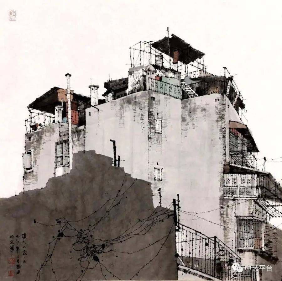 刘建的艺术实践,为我们提供了传统画科当代转化的成功范例。他以建筑为切入点,以水墨为媒介,以跨文化视野重新诠释了"山水"概念。在其笔下: