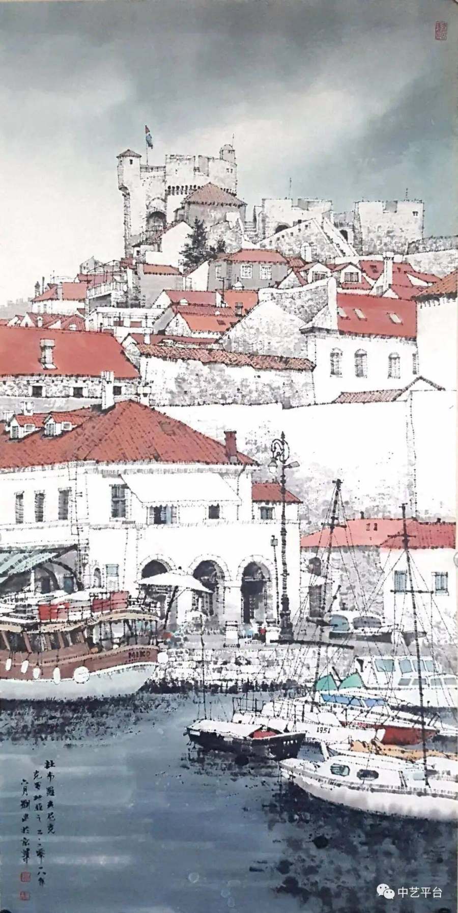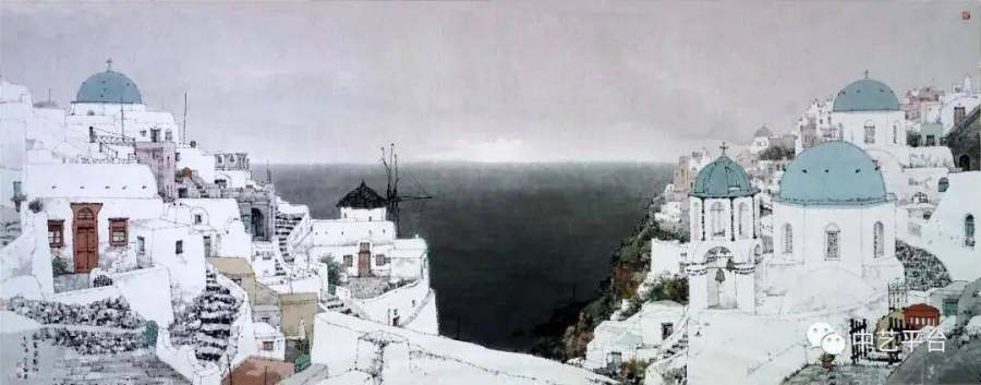 《柏林记忆》(2013)中,勃兰登堡门不再是地标建筑,而是历史沧桑的见证者;《风帆之都奥克兰》(2013)里,帆船与天空线构成动静相宜的韵律;《耶路撒冷》(2013)则用颤抖的笔触勾勒出圣城的悲怆与神圣。这些作品不仅拓展了山水画的题材边界,更重新定义了"山水"概念——人与自然的关系,在当代已然转变为人类文明与自然环境的对话。