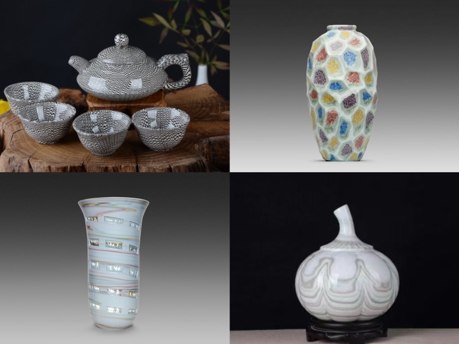 更难得的是,他并未止步于“复原”,而是致力于“创新”。金谷轩绞胎瓷的工序从传统72道升级至108道,编制技法从历史上的不足10种,拓展出星星纹、树叶纹、风车纹等近百种;产品也从单一器型,发展出瓷板画、镂雕瓷、浮雕瓷、茶具等8大类近千个品种。山水、花卉、人物皆能通过瓷泥编织呈现,且做到“表里如一”——这与多数瓷种依赖釉上绘画的方式截然不同,一举提升了陶瓷艺术的新高度。