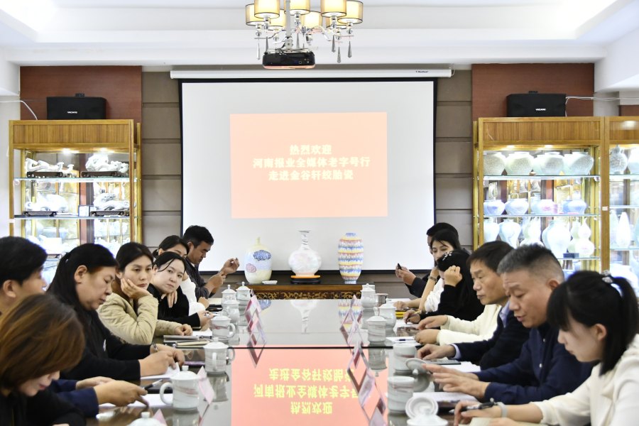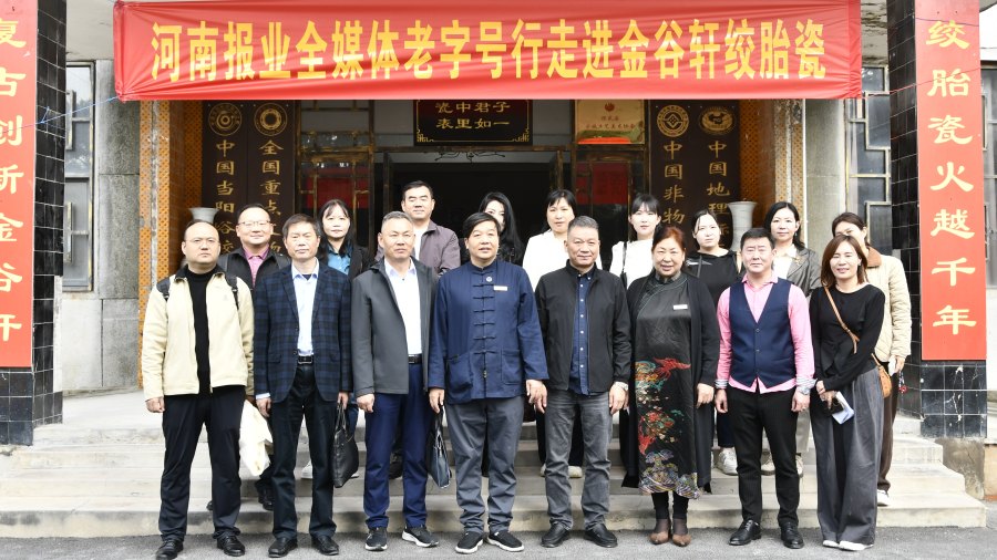 (记者:张玉韩)千年窑火永不熄,盛世名瓷焕新彩。10月14日,河南主流媒体老字号行活动启程,此次行程的目的地,是坐落于焦作、承载着千年瓷艺的中华老字号“金谷轩”绞胎瓷。当天,在国家级非物质文化遗产当阳峪绞胎瓷传承人柴战柱、焦作金谷轩绞胎瓷艺术有限公司董事长李红霞陪同下,由15家媒体组成的联合采访团,循着瓷艺脉络先后探访了国家级重点文物保护单位宋代当阳峪瓷窑遗址、见证了绞胎瓷技艺传承的柴家瓷窑旧址以及金谷轩绞胎瓷研学基地、金谷轩绞胎瓷非遗艺术博物馆。一路参观、采访、拍摄,再到深度交流座谈,可谓收获满满……
