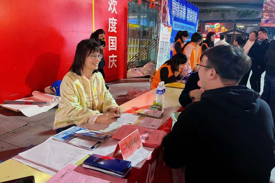 10月15日晚,中牟新区人社局社保中心移动服务小窗口“牟小保”,搭载“乐业小站”招聘活动平台,在天泽城广场,将政策宣传和业务办理服务送至市民身边,赢得了群众的广泛赞誉。