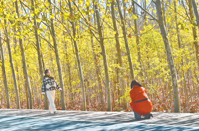 黄河滩地公园,林荫相伴,疏影斑斓 本报记者 周甬 摄