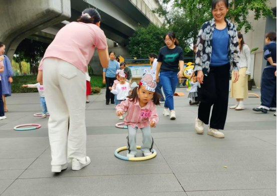为深入普及科学早教理念,提升社区家庭教育水平,促进婴幼儿全面发展,2025年10月15日,四川省成都市金牛区凤凰山街道金韦社区关工委联合成都十五幼儿园成功举办了"亲子同乐,快乐成长"早教进社区活动。本次活动分为"智慧运沙包"、“欢乐跳圈圈”、“勇者挑战”三个环节。
