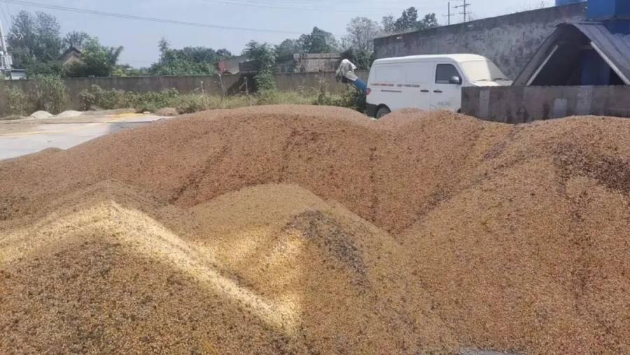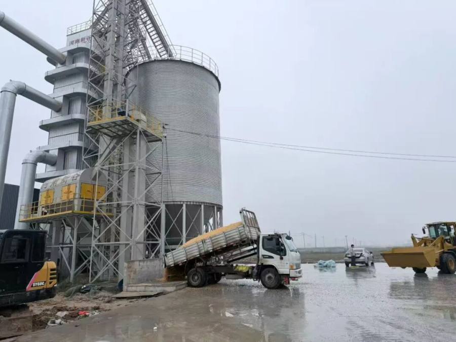 新郑、商水、荥阳基地 3500 吨烘干能力全天运转,单日烘干粮食超8000 吨;兰考红庙镇 500 吨烘干塔紧急提前投产,为周边1.5 万亩土地提供玉米烘干服务;安阳县瓦店镇 500 吨烘干塔加快建设,8 号试机、9 号投用,与天气抢时间。