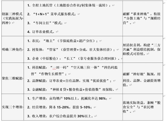 创新三种服务模式,是破局的机制基础,重点解决了“土地分散化”与“经营规模化”的矛盾。