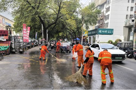 整治现场,环卫人员分工明确、协作紧密,依据油污的轻重程度精准施策。面对大面积油污区域,首先均匀抛洒火碱,使油污加速分解和软化,随后,环卫骨干们手持火碱刷对顽固污渍反复擦拭,不放过任何一个细微角落,以“绣花”般的功夫确保油污“无处藏身”。紧接着用高压水流对路面进行全方位冲洗,将分解后的油污与杂物彻底冲净,同步清扫积水、清理残渣,还路面以原本的洁净整洁面容,为市民打造出安全、舒适的出行环境。