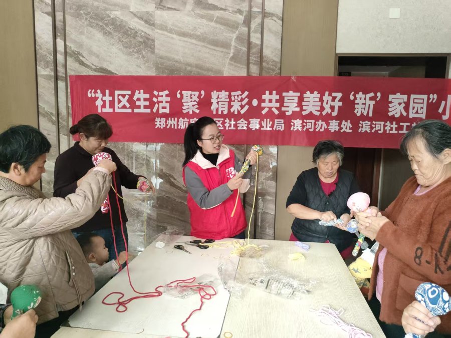 10月16日,滨河社工站在郑州航空港区社会事业局和滨河办事处的指导下,联合凌寒街社区在正商雅庭华府小区开展“社区生活‘聚’精彩 共享美好‘新’家园小组第三节——巧制艾草锤 乐享银龄新生活。进一步丰富了居民的业余文化生活,倡导了绿色健康的生活理念。