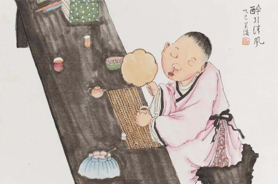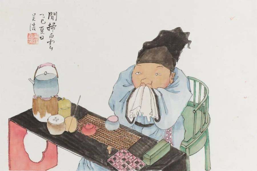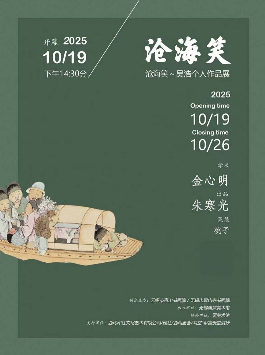 遥想当年,李白奉旨出剡中,喟然叹曰:“仰天大笑出门去,我辈岂是蓬蒿人!”其入世之欲、建功之望,慷慨可感。在这幅吴浩的《沧海笑》中,我们同样听到了豪迈的伴音,但这不是入世者的豪情,而是阅尽沧桑、洞观世态后的了悟。是一种终于觉察到人生意义的轻快,一种迷途知返的喜悦。陶彭泽曾经表达了这种急切思归的心情,他写道:“舟遥遥以轻扬,风飘飘而吹衣。问征夫以前路,恨晨光之熹微……”