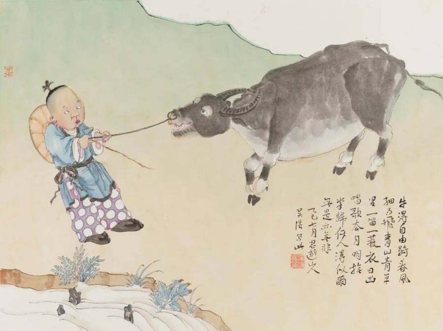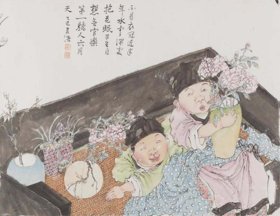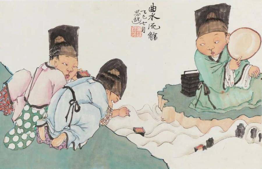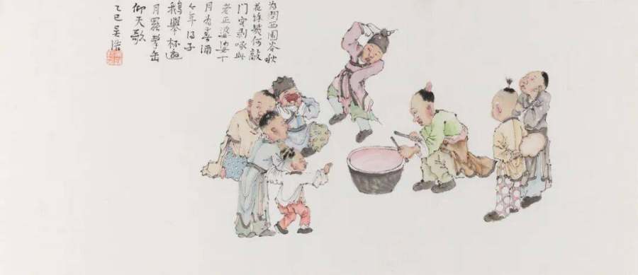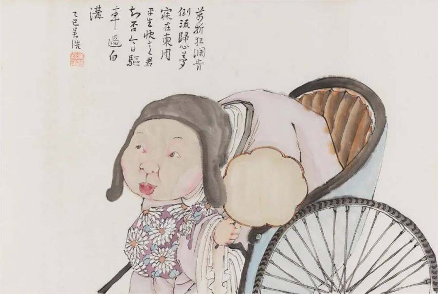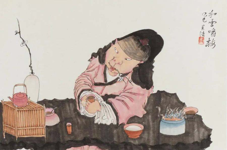 借助作品形式和内容的和谐关系,至此,我们才明白,原来在入与出之间,画家并不打算为咱们给出一个关于人生去向的答案,而不过是在呈现中国文化传统中关于人生部分的本然状态。甚至黄沾天才的词章,要紧的也非其文字内容,而首先是画家赋予的视觉状态。那是整体融入中国画章法样式的灵秀的书法,不仅平衡了构图,也拨动了琴弦……它穿越空阔的江天,风一样地把歌声传递得越来越近。