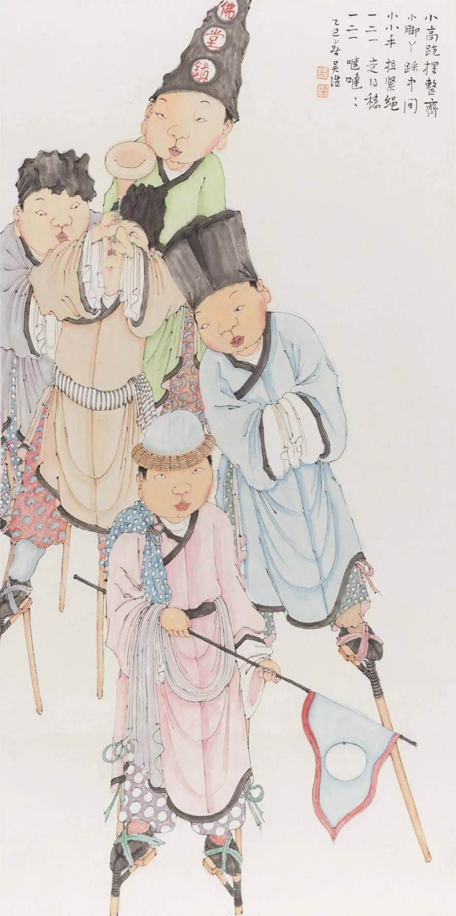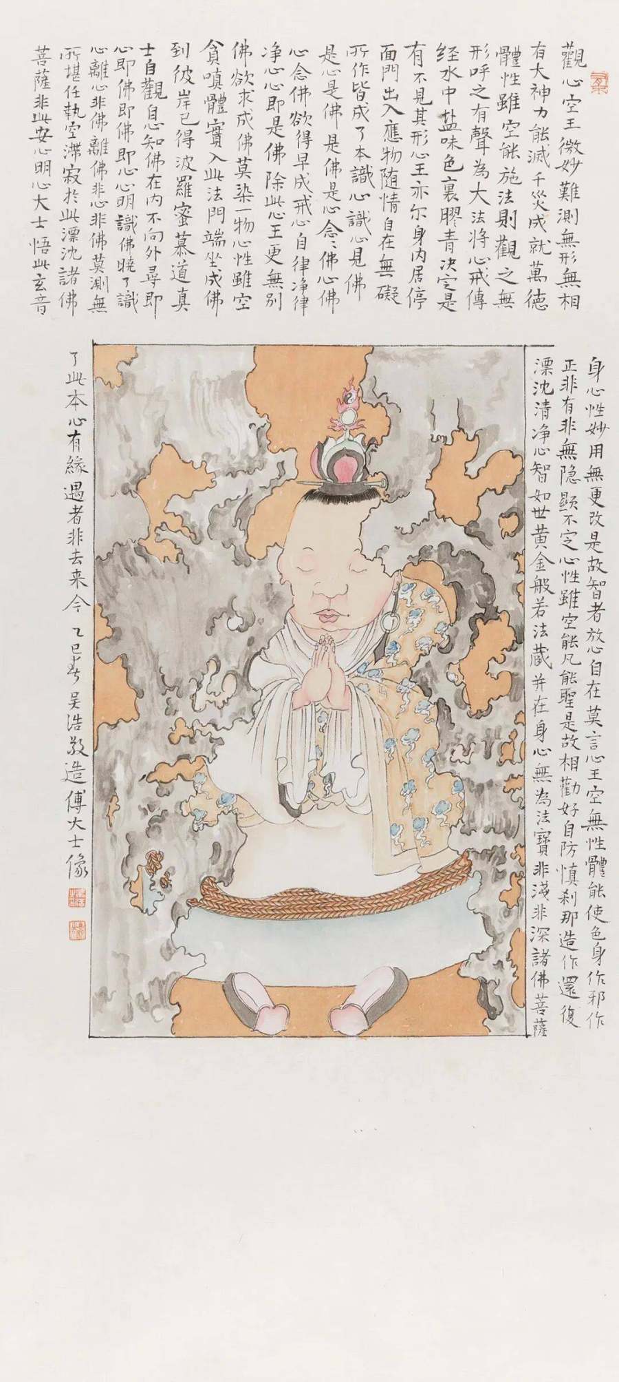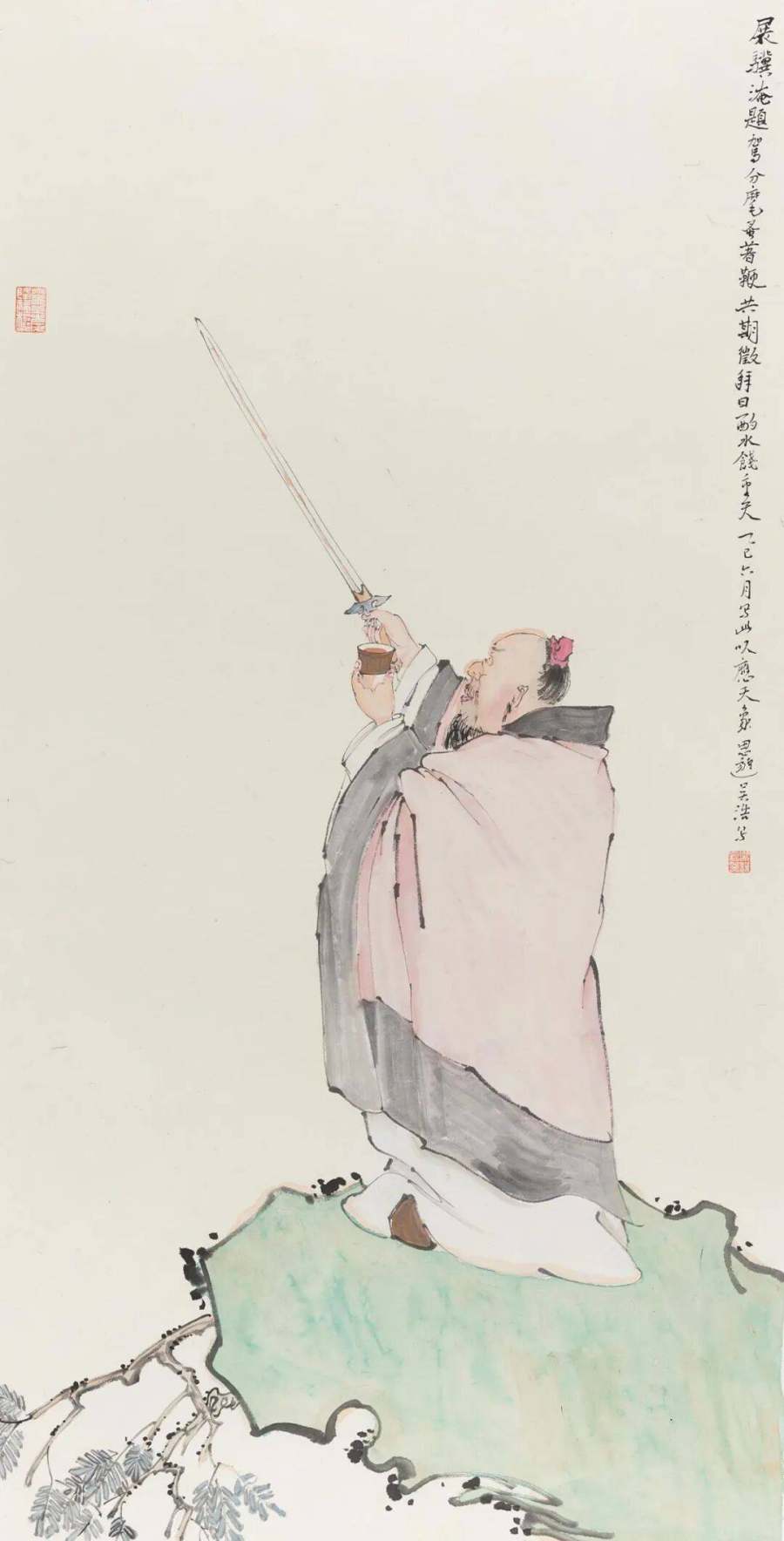 入世与出世,是中国传统文化的经典主题。吴浩的《沧海笑》一画,可谓是对这个主题的一次艺术诠释。如果说用“儒道互补”来概括士大夫的人生哲学是有迹可循的,那么,用“侠仙相济”来形容武士侠客的人生轨迹,也并非言之无据。士大夫处身庙堂,进可为儒,退可观道:武者侠士行走江湖,进而仗剑,退而登仙。所以,进可攻,退可守——达则兼济天下,穷则独善其身,是一种不论上下,不问文武的普适的东方智慧。一面是积极进取,一面是练达超脱,然而乐观如一,生趣不便……即使履身黑暗,撞见真相,也不给厌世主义留下机会,往往是以开悟化解绝望,以激流身退代替玉石俱焚。所以,在中国古典美学中,几乎没有悲剧的地位,“意境” 才是最重要的范畴。