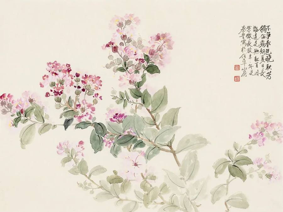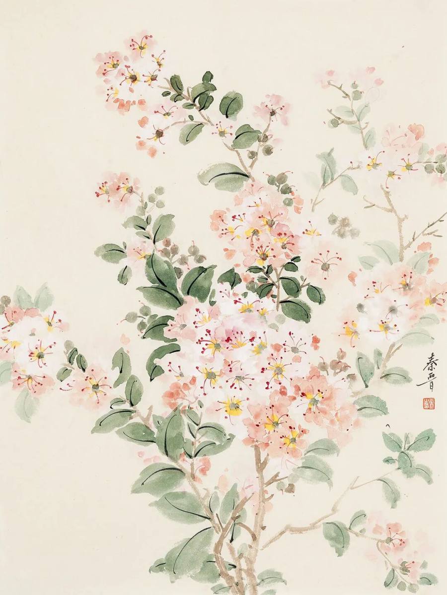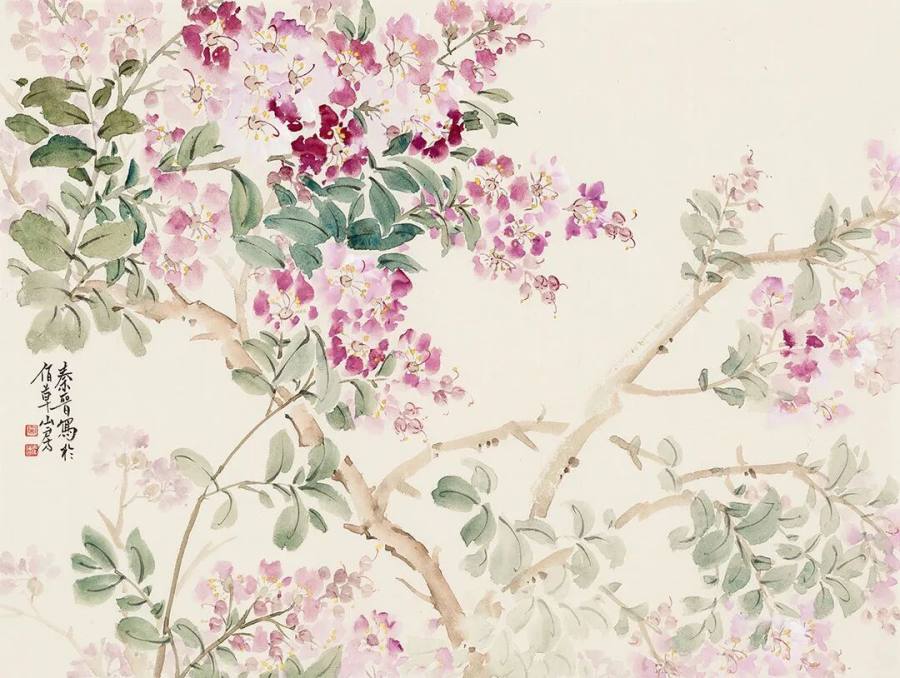 ◎紫薇花开-45x34cm-纸本设色-2025