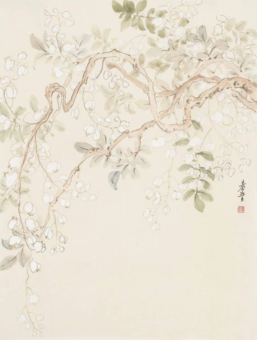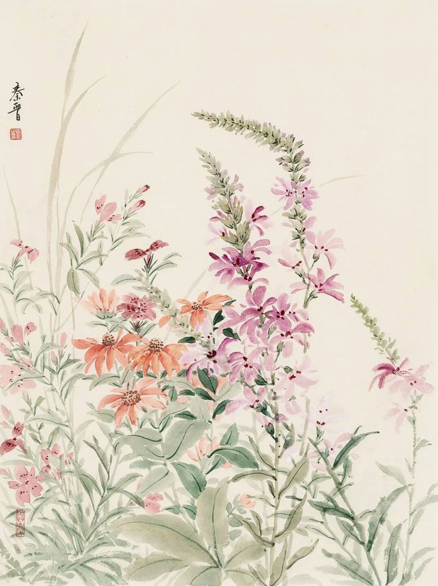 宋秦晋的画作,承袭了中国花鸟画的文脉,却又不为其所囿。她以精微的观察力,捕捉草木最动人的瞬间 —— 一滴露珠的剔透,一片叶脉的蜿蜒,一朵花苞的含羞。她的笔触,既有工笔的严谨与细腻,将物象的形态刻画得丝丝入扣;又融入了写意的灵动与率真,用色清丽脱俗,仿佛汲取了朝露与晚霞的精华,画面总是浸润着一层温润而明亮的光感。这光,并非来自外部,而是源于草木自身内在的生命之力。