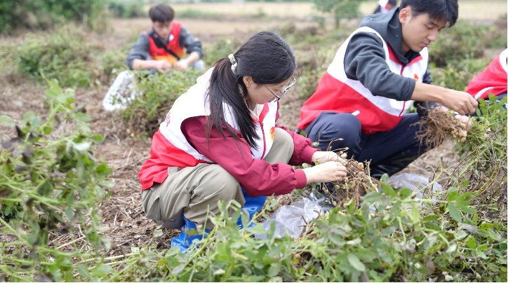 随后,在技术人员指导下,师生们迅速投入花生采收工作。大家穿上胶鞋、俯身田间,学习拔花生、抖土、分拣的技巧。尽管动作略显生疏,但每个人都认真投入,在劳动中切身感受“粒粒皆辛苦”的含义。