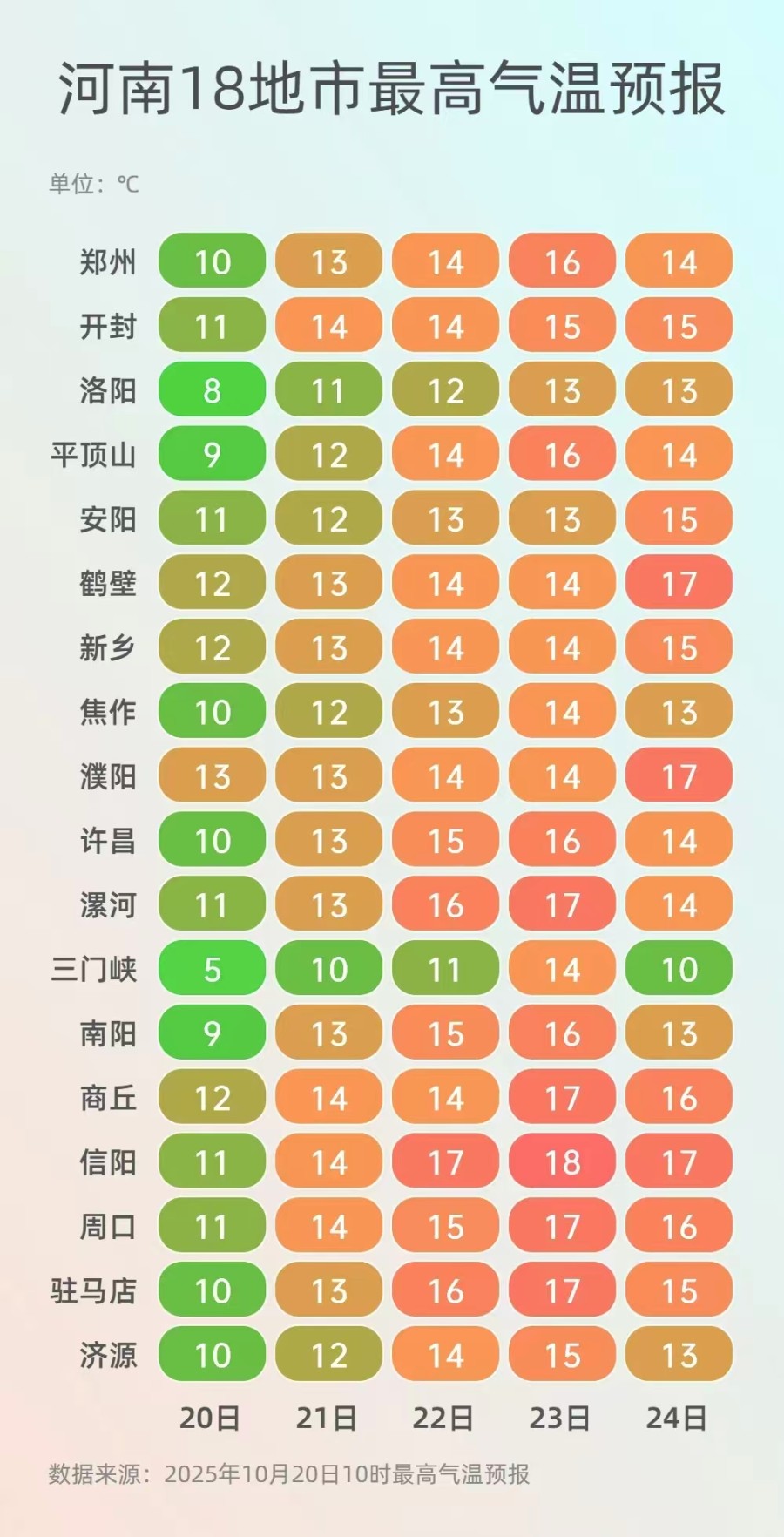 今天全省大部最高气温只有10度上下,后天将回暖至15度左右。但最低温度只有8度上下,早晚寒气十足,秋裤、羽绒服是时候出场了,注意保暖,谨防感冒。