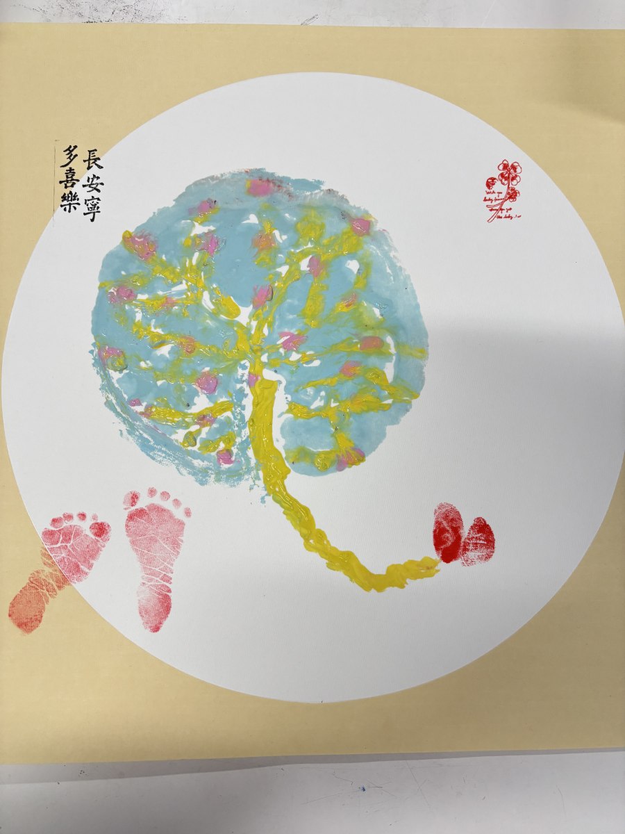 原来,在产妇知情同意并符合医疗规范的前提下,将胎盘专业消毒处理,胎盘蘸取安全无毒颜料后,可在纸张上摁压胎盘痕迹,制作成生命中第一张“母子相连”的画作。