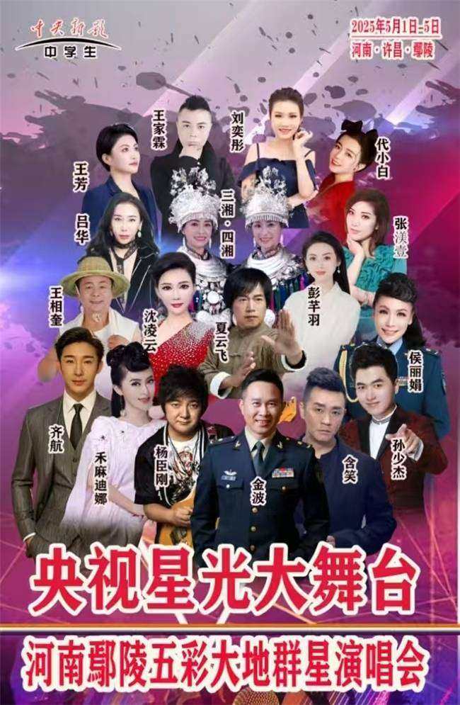 2025年5月1日至5日中央新影中学生频道《星光大舞台》栏目组走进河南省鄢陵五彩大地专场晚会盛大举行。晚会由中共鄢陵县委宣传部、中央新影中学生频道《星光大舞台》栏目组联合主办,鄢陵县政通五彩文化旅游发展有限公司承办,中央新影中学生频道《星光大舞台》栏目组主任杨国文、董进党、外宣部主任郭玉宝、出席本次活动,本场晚会导演代小白,主持人:中央新影中学生频道主持人彭芊羽,歌手含笑、金波、沈凌云、齐航、张渼壹、禾麻迪娜、孙少杰、夏云飞、吕华、王家霖、王相奎、王芳、傅小如等明星助阵,本次演出成为鄢陵文化活动的又一亮点。鄢陵县以“中国花木之乡”闻名,花木产业为核心支柱,年综合收入超130亿元,并依托生态优势发展康养旅游,形成“花木+生态+旅游+康养”产业链。本次晚会五彩大地作为核心景区,鄢陵县以万亩花海为背景,为晚会提供了绝佳的自然舞台,彰显了"以花为媒、文化搭台"文旅活力迸发的独特发展路径:近年来,鄢陵持续推出高品质文化活动,积极优化营商环境,如历届鄢陵县花木博览会,此次文艺晚会进一步一丰富了"文化鄢陵"品牌内涵。