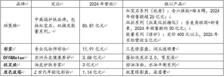 相比大单品依赖,投资者更关注的是公司品牌推陈出新、大单品的持续孵化能力。公司现有的品牌矩阵包括:珀莱雅、彩棠、OR、悦芙媞、原色波塔等。