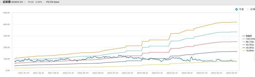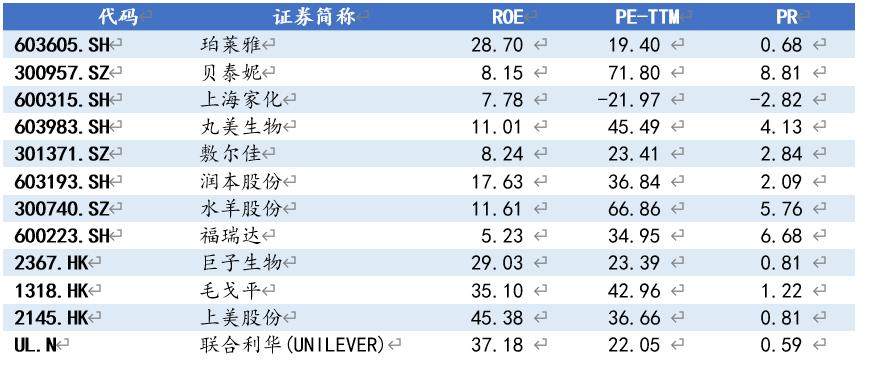 从市赚率(PR,即PE/ROE)来看,珀莱雅当前PR为0.68倍,已经处于相对低估的水平,股息率1.77%((按上年分红1.19元*0.5+年中分红0.8元)/股价)。与国内A与H股上市的美护公司来看,PR处于最低值,远低于贝泰妮的8.81倍(25年半年报营收与净利润双双降)。