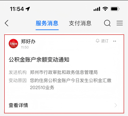 职工点击“支付宝”推送的信息,系统将自动跳转至“郑好办”平台的公积金服务,可查看业务办理明细。为确保信息及时触达,账户变动提醒服务在每日8时至20时进行实时推送。若出现账户已发生变动却未收到推送消息的情况,职工可核查“支付宝”与“郑好办”双平台实名认证信息的真实性与一致性,完成核验后,即可正常接收业务变动提醒。