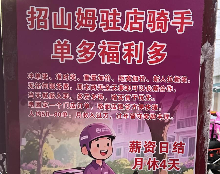 山姆驻店骑手招聘;蓝鲸新闻 孙煜摄