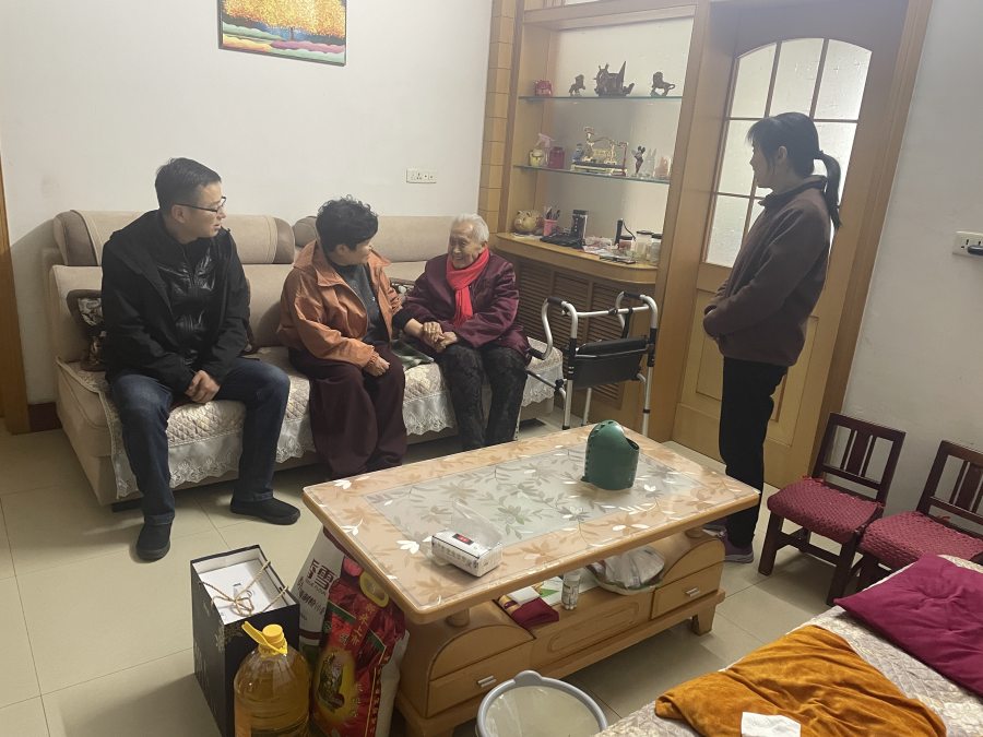 走访慰问送温情,点滴关怀暖人心。社区工作人员与志愿者组成慰问小组,携带米、面、食用油及节日慰问品,深入辖区90岁以上老年人家中。每到一户,工作人员都与老人促膝长谈,详细询问其身体状况、生活需求,仔细检查家中水电安全设施。此次走访共覆盖11户老人,不仅为他们带来节日的问候,更让老人们切实感受到社区大家庭的温暖。