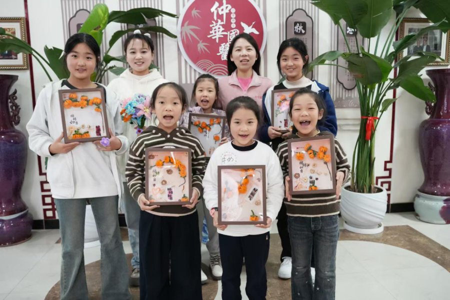 当孩子们把做好的柿子装到画框里。一幅幅”画“里,既有扭扭棒的柔软触感,又藏着中药的淡淡醇香,孩子们举着自己的作品,脸上满是骄傲:“我要把它送给我的爸爸,因为爸爸上班辛苦了”“我要送给姥姥,祝姥姥事事如意!”