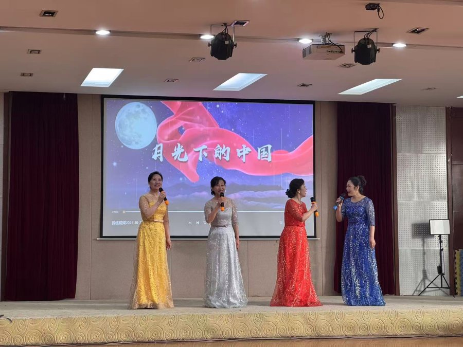 活动在欢快灵动的藏族舞《最美情缘》中拉开序幕。舞者们身着特色藏族服饰,踏着明快的节奏,用舒展的舞姿展现出浓郁的民族风情,将现场气氛瞬间点燃,赢得了台下观众的阵阵掌声。随后,折扇秀《你是我心中的茉莉花》精彩登场,表演者们手持素雅折扇,开合之间尽显优雅韵味,舞姿与旋律完美融合,宛如一朵朵茉莉花在舞台上悄然绽放,传递出细腻温婉的情感。诗朗诵《月光下的中国》以深情的语调、真挚的情感,描绘出月光下祖国的壮丽山河与璀璨文明,引发了现场观众的强烈共鸣,让大家在字里行间感受到浓浓的家国情怀。戏曲《沁园春雪》则别出心裁,表演者以醇厚的唱腔、精湛的演绎,将经典词作的豪迈气势与深邃意境展现得淋漓尽致,为戏迷朋友们带来了一场别样的视听享受。舞蹈《苹果香》充满了生活气息,舞者们用活泼俏皮的动作,传递出丰收的喜悦与对美好生活的向往,感染着现场的每一位观众。活动的压轴环节是大合唱《革命人永远年轻》《没有共产党就没有新中国》,社区居民们精神饱满、歌声嘹亮,激昂的旋律回荡在广场上空,既唱出了对革命先辈的缅怀,也表达了对党的无限热爱和对幸福生活的珍惜。