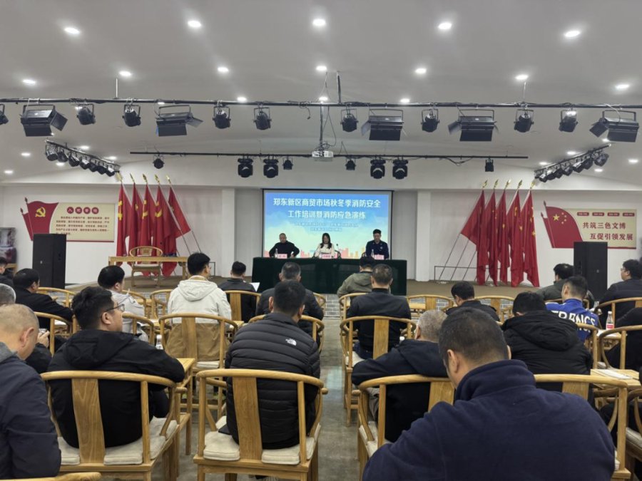 为进一步提高郑东新区辖区市场消防安全管理能力,切实保障辖区内火灾形势高度稳定,10月 27 日下午,郑东新区市场分中心联合辖区消防救援大队在文博城市场组织开展“郑东新区商贸市场秋冬季节消防安全工作培训会暨消防应急演练现场会”,各市场方负责人和消防安全负责人参会。