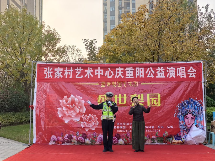 2025年10月28日,丰庆路街道张家村党委联合村艺术中心举办“九九重阳节”公益活动,以“文艺演出+交通安全宣传”的创新形式,与辖区老人共庆佳节,传承尊老敬老的传统美德,筑牢警民和谐纽带。