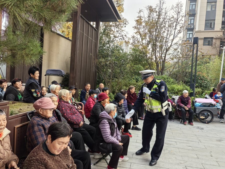 演出间隙,田警官结合节目内容,用通俗易懂的语言为老人们普及过马路、乘公交等日常交通安全知识,倡导文明出行理念。生动讲解既实用又贴心,成为警民互动、共筑平安社区的暖心缩影。
