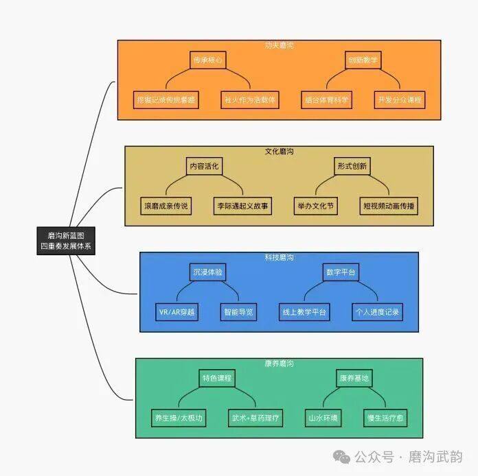 当百年武术遇上现代科技,会碰撞出怎样的火花?未来的磨沟,将引入VR/AR技术,让游客戴上设备就能“穿越”到元末明初,看“挪挪爷”传授少林功夫;搭建磨沟武术数字化平台,线上就能跟着非遗传承人学招式,还能记录自己的训练进度;甚至在村落里设置智能导览屏,扫码就能听磨沟历史、看武术套路解析。科技不是为了改变传统,而是为了让更多人以更便捷的方式靠近传统,让“科技磨沟”成为连接过去与未来的桥梁。