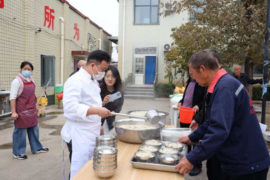 上午10时许,武记餐饮的工作人员怀着诚挚心意抵达颍阳镇敬老院。一进门,大家便迅速投入服务,原本安静的院区瞬间热闹起来,勾勒出“高堂围坐,笑语盈榭”的温馨图景。