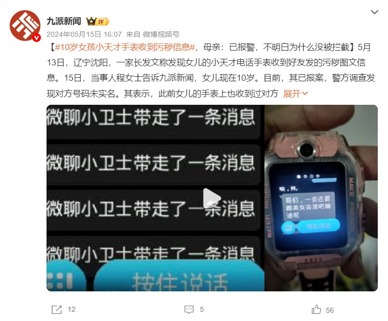 值得关注的是,此次事件,在儿童产品行业不过是冰山一角。2022年,小天才因T1儿童平板电脑部分APP含有色情、血腥、暴力等内容问题,被京津冀三地消协约谈。2024年5月,有媒体报道称,一家长反映,10岁女孩的小天才电话手表收到好友发的污秽图文信息。