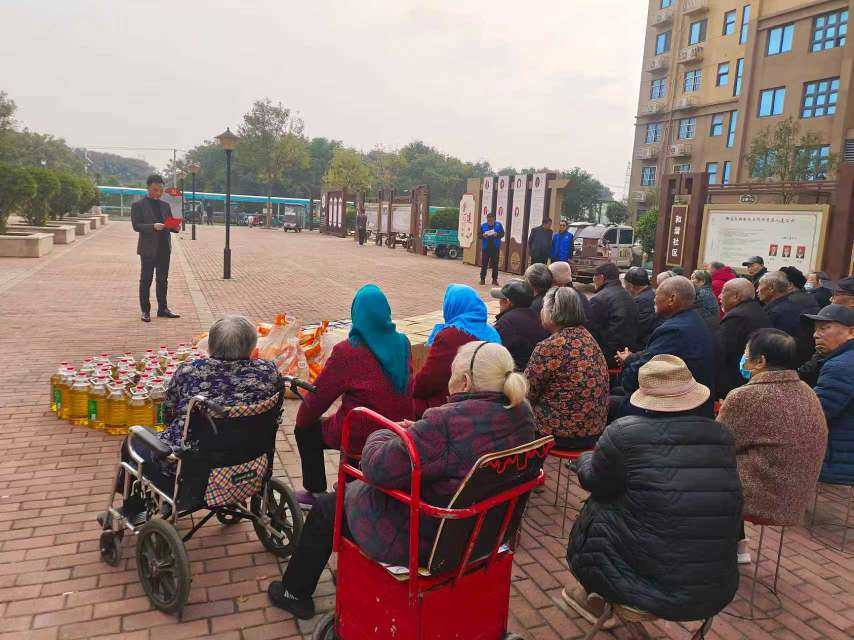 活动伊始,村党支部书记张鹏率先上台发言。他话语中满是对老人们的敬重与牵挂:“各位老叔、老婶,今天是咱们老年人的节日,我代表村‘两委’向大家道一声节日快乐!咱们郭庄村能有如今干净整洁的环境、和谐和睦的氛围,离不开大家多年来的支持与付出——过去大家主动参与咱们村的治理,带头遵守村规民约;现在虽然年纪大了,还常常给咱们村工作提建议、出主意。现在条件好了,我们更要把这份‘敬老情’记在心里、落在实处。今天专门为老同志们准备了牛奶、鸡蛋、大米和食用油,一会儿志愿者就会给大家送到手里;接下来村还会继续完善老年活动室设施,添点新的棋牌和书籍,让咱们村的老人不仅老有所养,更能老有所乐、老有所安!”张鹏的讲话朴实真诚,句句说到了老人们的心坎里,现场响起阵阵热烈的掌声。