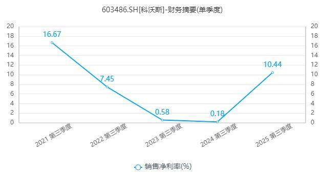 公司2025年第三季度销售净利率为10.44%,相较于去年同期的0.18%,得到了大幅提升。