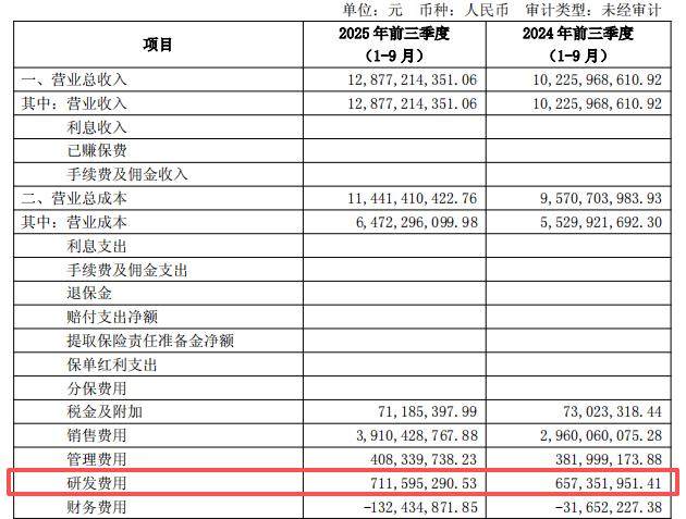 截至三季度末,其2025年研发费用已达7.12亿元,同比增长8.37%。