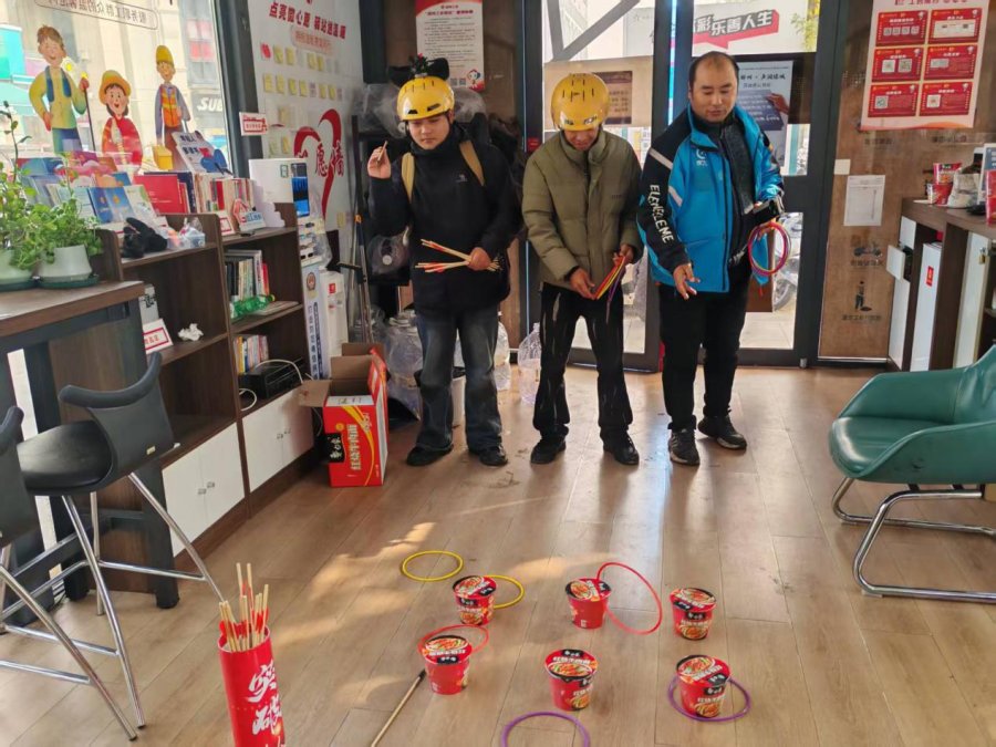 活动前,工会工作人员提前准备套圈和木质投壶道具,确保项目安全又有趣。活动开始后,职工们有序排队参与,有的瞄准心仪奖品反复调整站姿,力求套圈“一击即中”;有的在投壶区屏息凝神,尝试不同投掷角度,现场笑声与加油声不断。快递员张师傅刚完成一轮投壶,就笑着说:“平时送件一直跑,难得有机会坐下来玩游戏,输赢不重要,跟大家一起热闹特别解压!