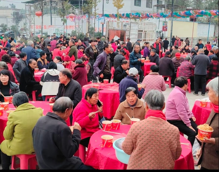 宣传区,社工及志愿者积极开展2026年医保征缴政策宣传,共发放宣传彩页350余份,这期间他们有欣然同意尽快缴纳的,有对医保报销质疑的,现场通过和他们聊实际案例,给以政策的解读并得到认可。随着夜幕降临,温馨晚宴在朝阳沟大食堂举行,老人们围坐一堂享受着当地的美食,看到老人们集体用餐的温馨场面,不由地感慨:“重阳不孤单,千人围坐吃暖饭,这才是咱老百姓的过节排场”啊!