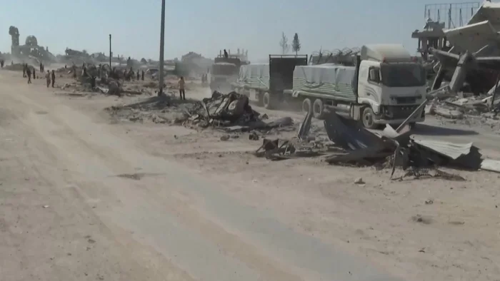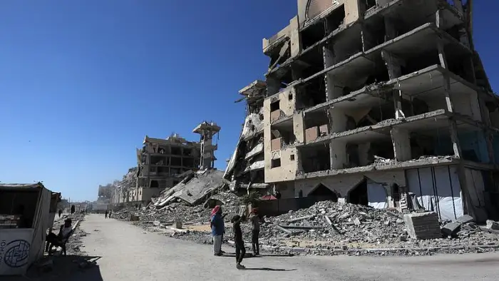 总台记者 李霜溪:我们可以看到我站的这个地方很干燥,风沙也很大,但是其实在爆炸发生之前,这里曾经是一个花园,有很多树,也有很多花草。但是爆炸发生后,这一切都不复存在了。