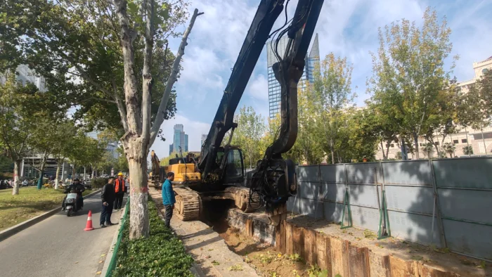 据观察,现场的施工信息牌显示围挡中的道路为“桃源路(兴华北街-大学路)排水管网改造工程”,建设单位为郑州市市政管理处,施工单位为郑州市市政设施维修建设有限公司,施工期限为“2023.5.1—2023.12.30”。