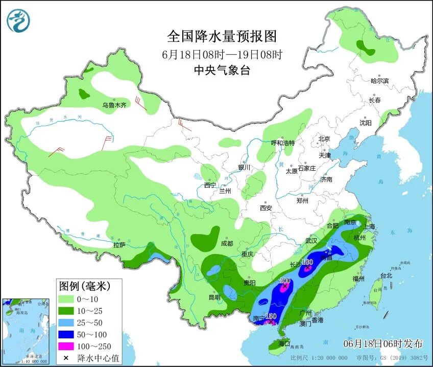 陈涛表示,5月至6月,我国主雨带位于江南南部至华南,与常年雨带位置基本一致。5月南方降水过程相较于4月整体偏少、强度较弱,主要与暖湿气流不够强盛等因素相关。但自6月9日以来,江南中南部至华南地区进入降水集中期,出现多轮强降水过程,江西中部、浙江南部、福建西部、广东中北部、广西北部等地累计降水量达300毫米至600毫米。