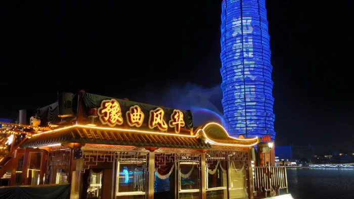 该项目以郑州历史文化脉络为轴,从古到今,由南至北,规划了“天地之中,黄帝故里,功夫郑州,大河奔涌,寰宇同辉”五幕场景。沿途布设灯光秀、水幕投影、伴船演绎、烟火市集等,展示内容基于厚重历史,注重时尚表达,包含鼓乐、少林功夫、姓氏文化等。