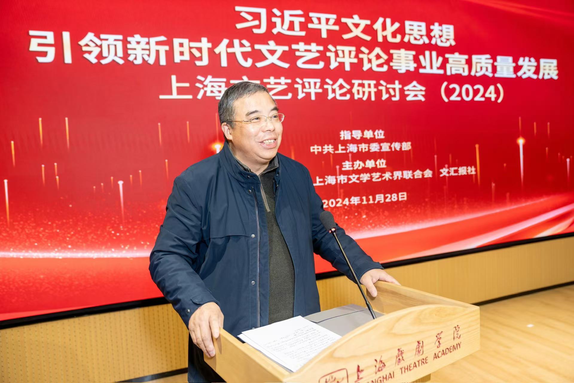 揭牌仪式后,三方联合举办了“习近平文化思想引领新时代文艺评论事业高质量发展——上海文艺评论研讨会”。中国电影评论学会会长饶曙光、上海交通大学人文学院院长吴俊、国务院学位委员会学科评议组(艺术学理论组)成员夏燕靖、上海戏剧学院舞蹈学院副院长张素琴、上海市作协副主席杨扬从各自专业领域出发,进行了主题演讲。