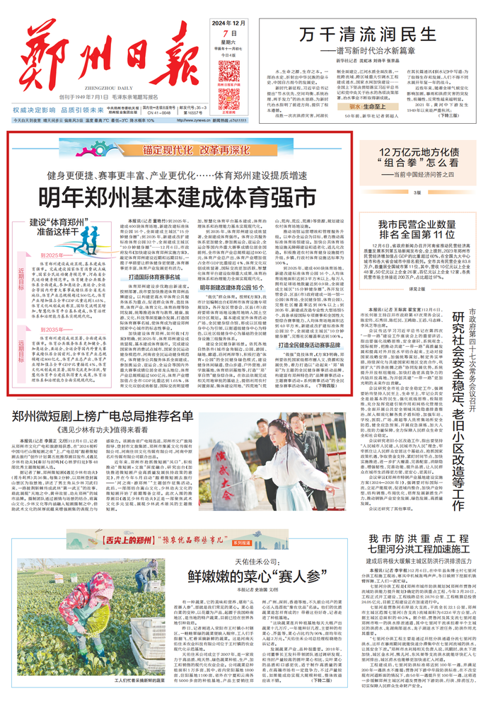 体育郑州建设步伐跑出新速度。按照部署,我市要加快推进体育郑州品牌建设。以构建更高水平体育公共服务体系为重点,促进群众体育、竞技体育、体育产业、体育文化、体育治理等协同发展,统筹推进体育与教育、健康、旅游、文化、科技等深度融合发展,打造国际体育赛事名城,使体育成为建设郑州国家中心城市的标志性事业。